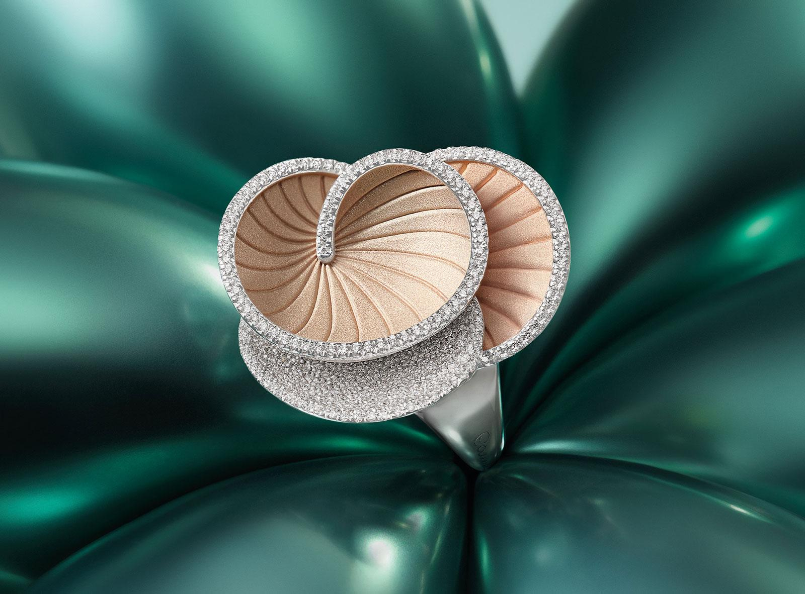 Hypnose Galaxy Series Ring, 18Kt Natural Beige, Pink Champagne Gold en pavé dimanten op White Ice Gold 0.74ct