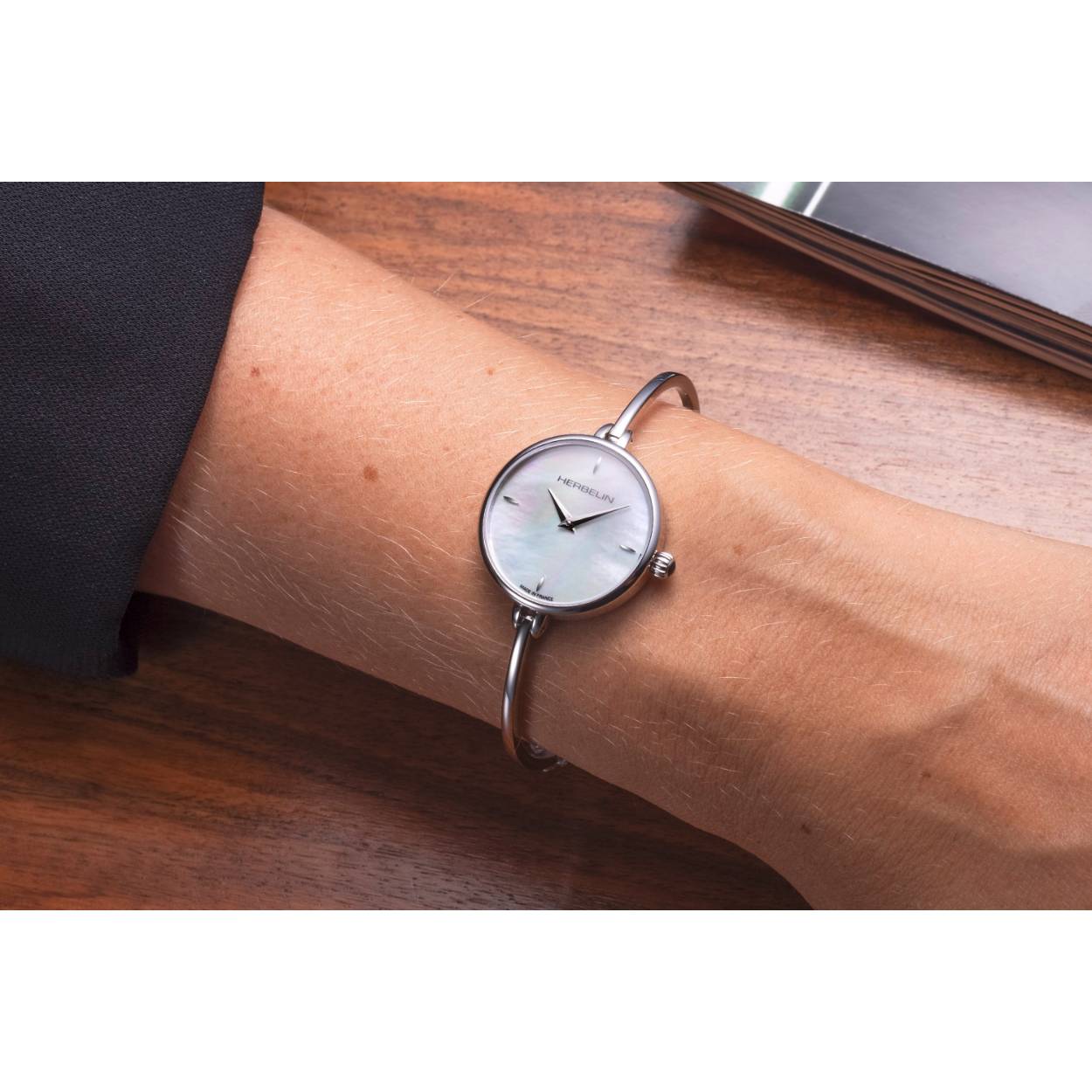 Fil is de collectie die vrouwelijkheid en verfijning vertegenwoordigt. De authentieke parelmoeren wijzerplaat wordt overvlogen door fijne dauphine wijzers. De fijne en strakke roestvrijstalen armband geeft een moderne uitstraling.
