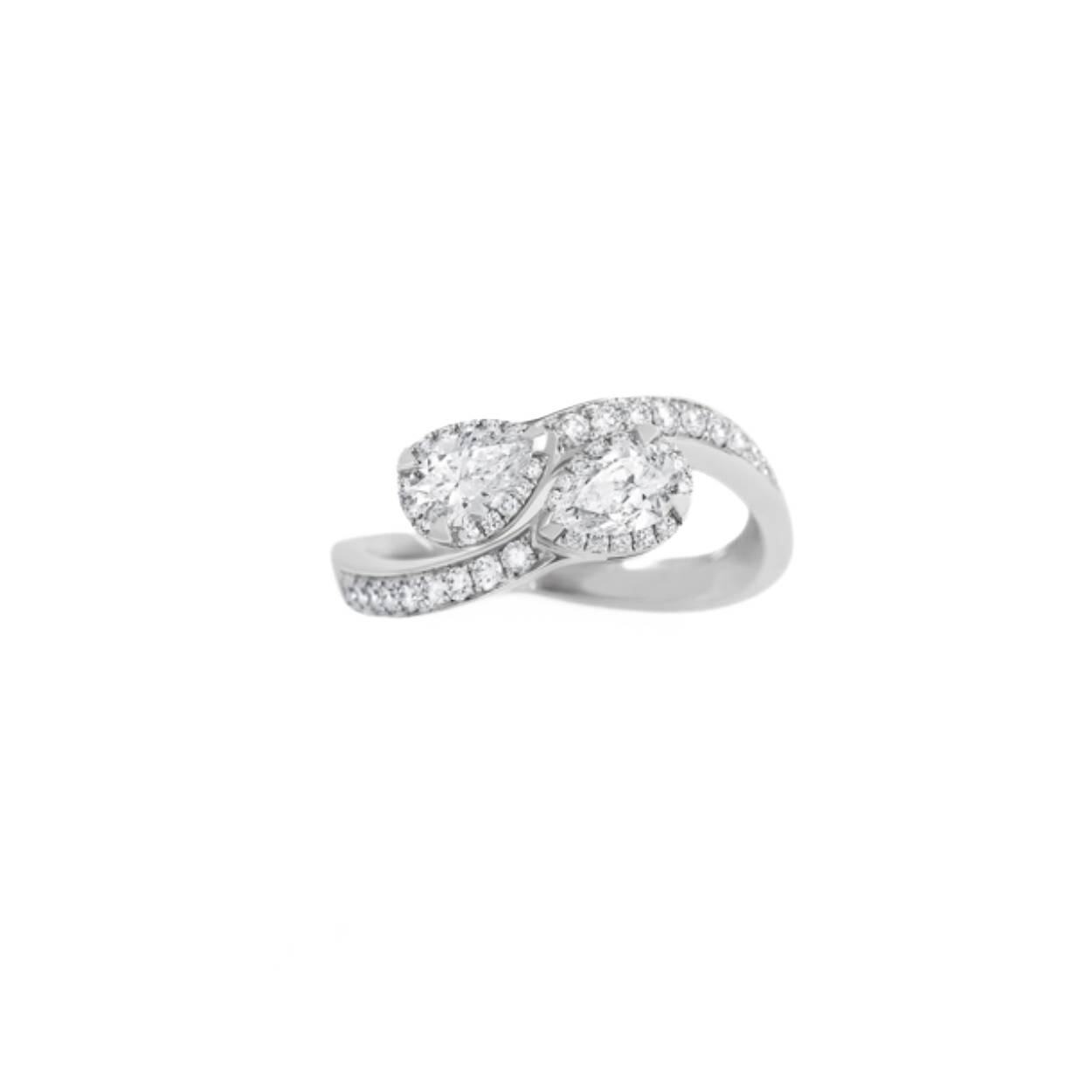 Witgouden en peervormige diamanten IOLUCE by-pass ring.