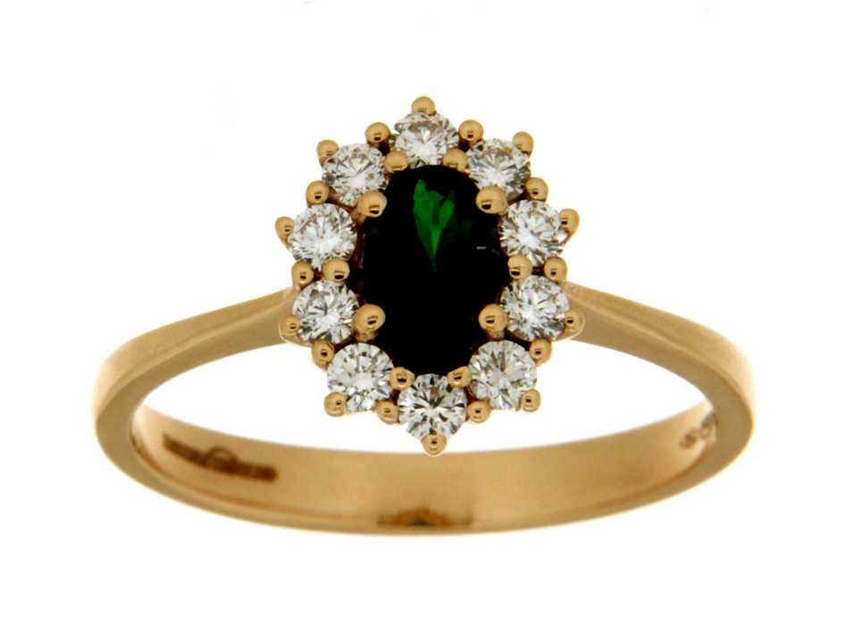 Roségouden ring met diamanten van 0.33ct en een tsavoriet van 0.52ct