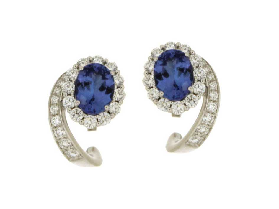 Witgouden oorbellen met tanzaniet en diamanten van 1.14ct