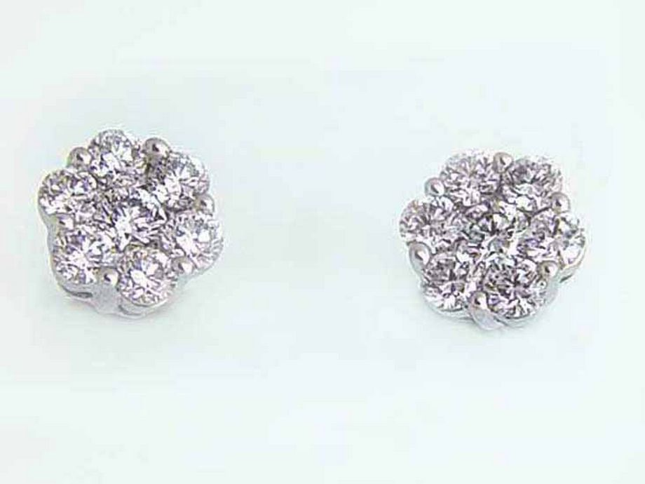 Witgouden oorstekers met diamanten 0.33ct in bloemvorm.
