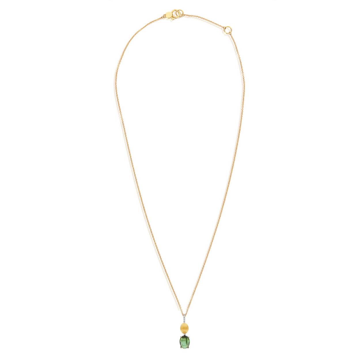 Geel goud collier 750 met diamant 0.04 ct met groene toermalijn. Lengte 42,5cm