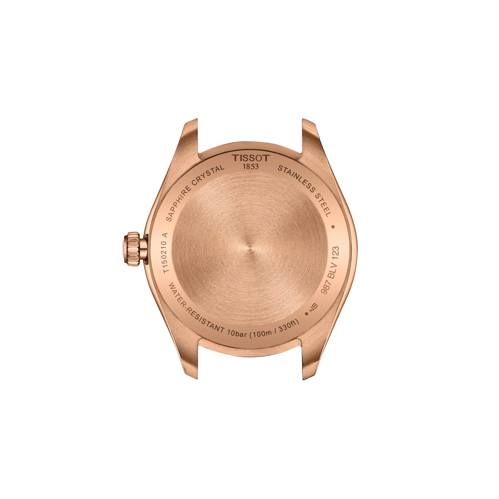 Een elegant en betrouwbaar horloge uit de PR 100-collectie van Tissot: het heeft een kast van roestvrij staal met roségouden coating, een witte parelmoer-wijzerplaat en een Zwitsers kwartsuurwerk — én is waterdicht tot 100 m.